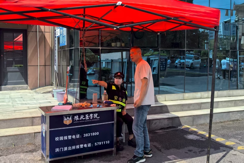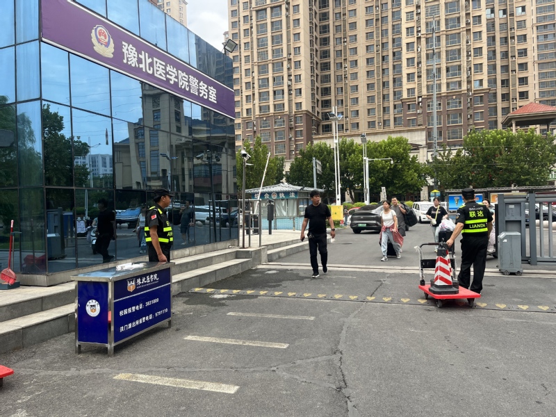 与此同时,安保人员坚守门岗,核验身份、疏导交通,守护着校园第一道防线。