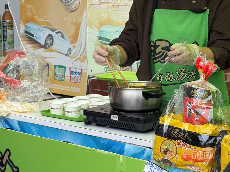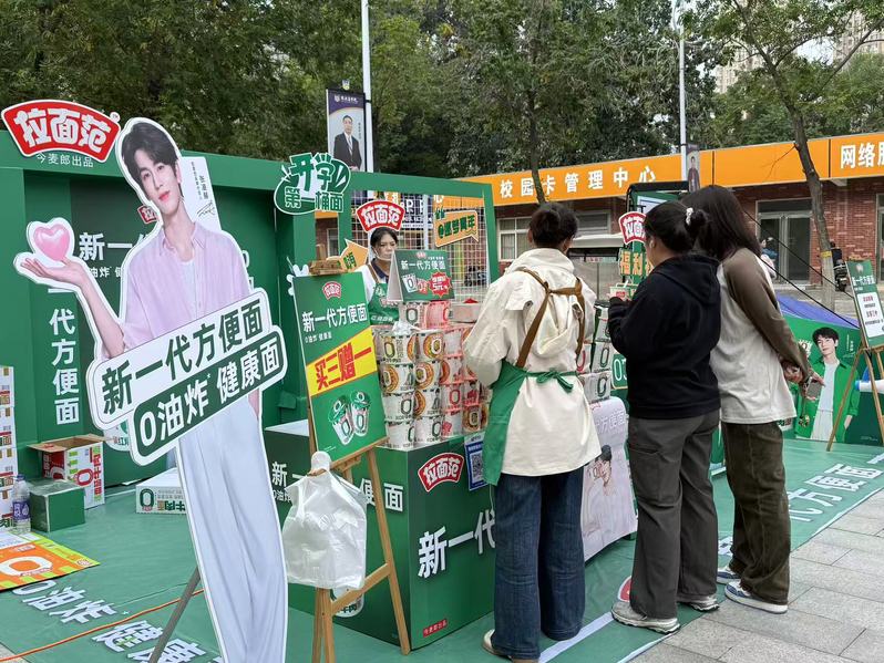 该活动形式兼具实用性与趣味性:参与投球比赛,达成5球3中,即可领取精美礼品;工作人员现场精心烹饪,邀请师生免费试吃体验;活动期间多买多送,还有明星周边可以领取,多重惊喜点燃参与同学们的的热情。