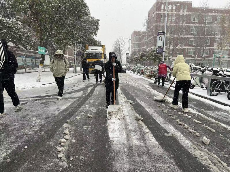 经过数小时奋战,校园主要通行路段积雪残冰尽数清除,一条条安全通畅的道路贯穿校园。此次行动不仅展现了校区管理处高效的应急处置能力,更凝聚了师生员工团结协作、无私奉献的精神力量。寒风中的身影定格成最美风景,用劳动与担当驱散了冬日寒意,让互助暖流在校园里持续涌动。