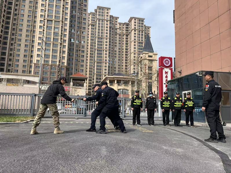实操演示环节,教练手把手示范防暴器材使用、防御站位、近距离牵制等核心动作,耐心指导参训保安逐一练习,及时纠正不规范操作,确保每一位参训人员都能熟练掌握实操技能。全体参训保安态度端正、认真学习,主动请教、积极实操,现场学习氛围浓厚。